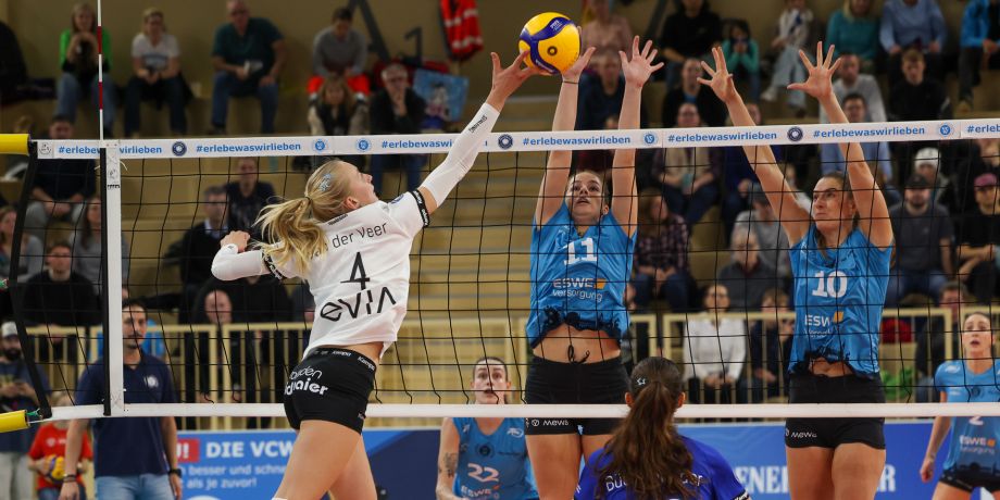 Der VC Wiesbaden hat den bemerkenswerten Lauf des neuen Tabellenzweiten der 1. Volleyball Bundesliga Frauen nicht stoppen können, verkaufte sich am Freitagabend aber beim VfB Suhl Lotto Thüringen teuer. Die Mannschaft von Chefcoach Tigin Yağlioğlu und den Co’s Christian Sossenheimer und Marcel Frisch bot nach dreiwöchiger Spielpause in Suhls „Wolfsgrube“ vor knapp 965 Zuschauern streckenweise überzeugende Lösungen, kämpfte verbissen und holte mehrfach auch größere Rückstände auf. Am Ende setzten sich die resilienteren und angriffsstärkeren Gastgeberinnen durch.