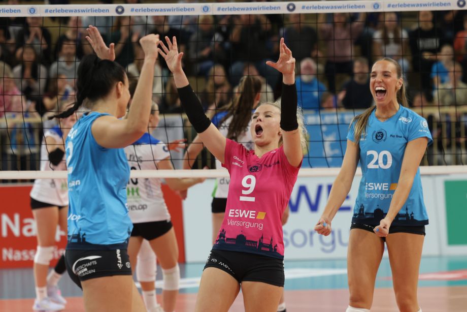 Der VC Wiesbaden steht vor einer Englischen Woche mit drei Spielen: Am Freitag (24.10.2025, 19:00 Uhr) gilt es in Dresdens Margon Arena bei einem der Schwergewichte der 1. Volleyball Bundesliga Frauen zu bestehen. Vier Tage später kommt Schwarz-Weiß Erfurt nach Wiesbaden (28.10.2025, 19:30 Uhr). Und am Samstag darauf (1.11.2025, 20:00 Uhr) empfangen die Hessinnen die Binder Blaubären TSV Flacht in der Sporthalle am Platz der Deutschen Einheit.