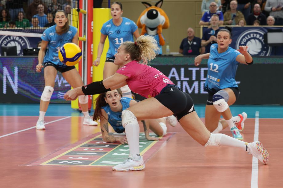 Laura Broekstra servierte in den ersten Minuten ein Ass. Der VCW lag anfangs in Front (2:1, 4:2), kassierte später den Ausgleich (7:7), aber dann auch postwendend den Rückstand (8:10). Ein Wiesbadener Zwischenhoch sorgte wieder für mehr Stimmung auf den Rängen (14:12 und 17:15 durch eine pfiffige Finte von Jimena Fernández Gayoso). Ruhe kehrte damit aber nicht ein, im Gegenteil. Zu viele vergebliche Angriffsversuche spielten den Ladies in Black in die Karten, die ihre Trümpfe nun kompromisslos aufs Parkett knallten (21:19, 23:20). Sanne Konijnenberg machte es nochmal spannend (22:23), aber Lilly Bietaus fehlerhafter Aufschlag bescherte dem Gast schließlich die ersten Matchbälle. Der VCW verschlug den letzten Ball – und musste anschließend den Ladies in Black zum Einzug ins Pokalviertelfinale gratulieren (22:25 = 1:3).
